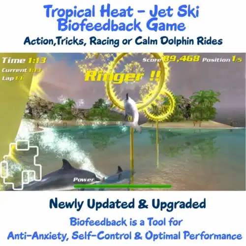 Tropical Heat is for you: Male or female, young or old! Perfect for seasoned gamers – but also is for those who have never before played a video game (my 3 and 5 year old kids can smooth their heart rate playing Tropical Heat! – Ryan Deluz) Learn breathing and heart rate control as you play, using the breath pacer animations that are integrated into Tropical Heat. Tropical Heat is FILLED with heart rate feedback: speed, rolling fog, sky color, music, sound effects, and more all respond to your stress levels. If you are using Tropical Heat with IOM sensors you can also choose skin conductance feedback mode. The longer you play Tropical Heat, the more fun it becomes. Discover amazing new stunts, tricks and combinations, and rack up in-game achievement medals for special tasks. Professionals consider Tropical Heat Jet Ski a step above all other biofeedback games.What do the users of Tropical Heat say?